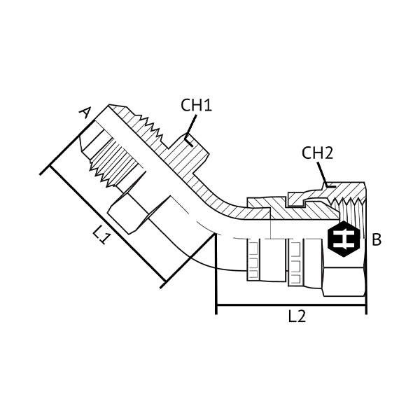 M.JIC x F.BSPP sw. elbow 45° bent tube adapter