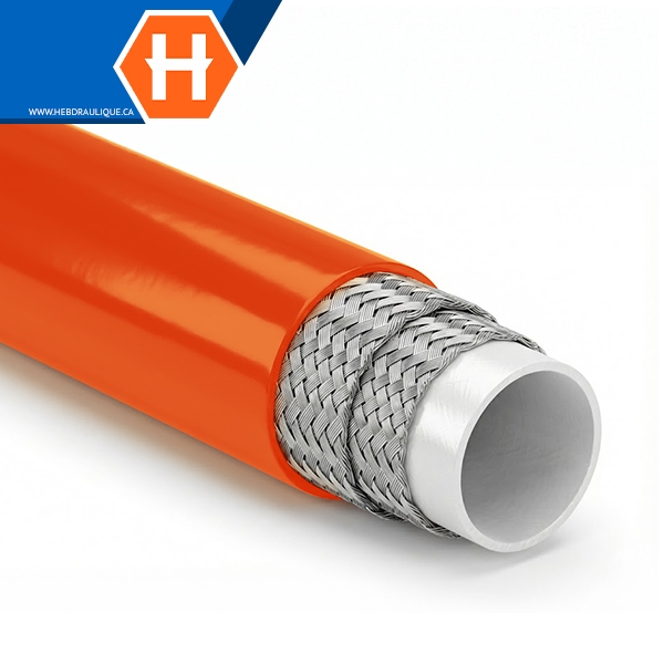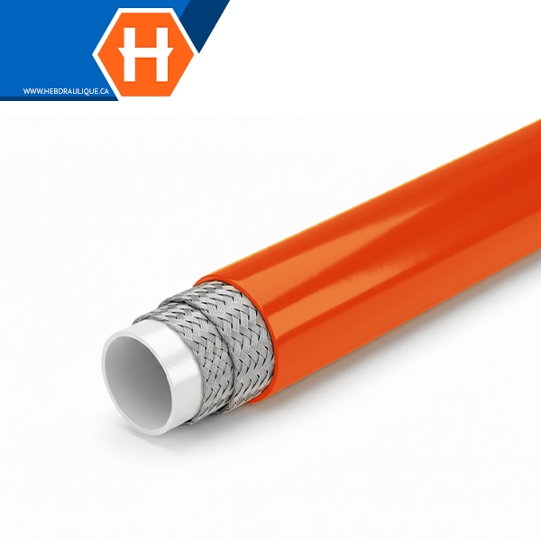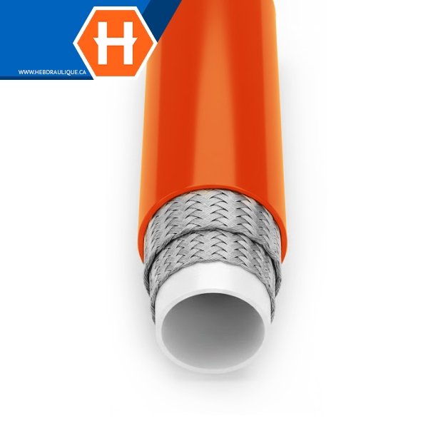 Thermoplastic non-conductive hose w/ orange polyurethane cover SAE 100R7