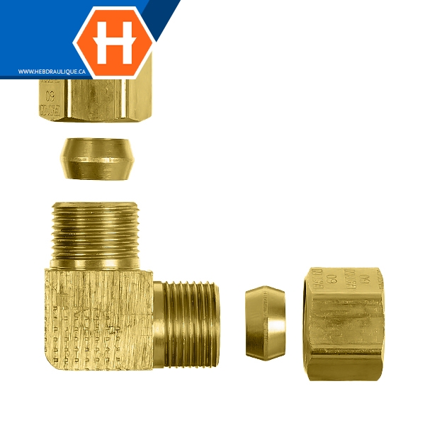 Adaptateur union à compression 90° laiton