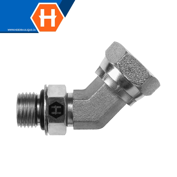 Adaptateur 45° mâle ORB (O-Ring Boss) ajustable x femelle NPT tournant