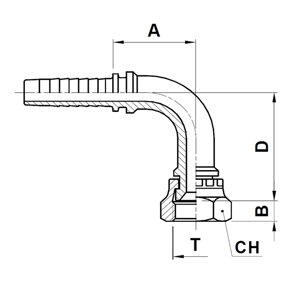 Raccord 2pcs 90° (long) fem. JIC tournant