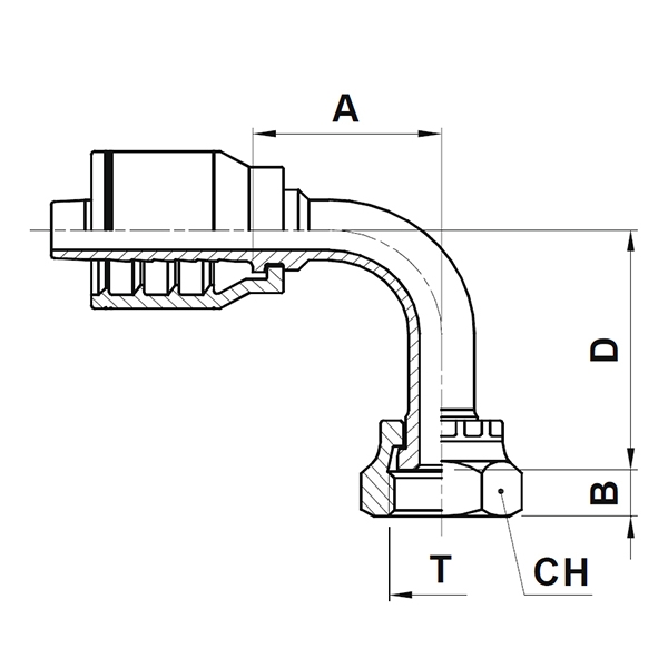 Raccord 1pc 90° (long) fem. ORFS tournant